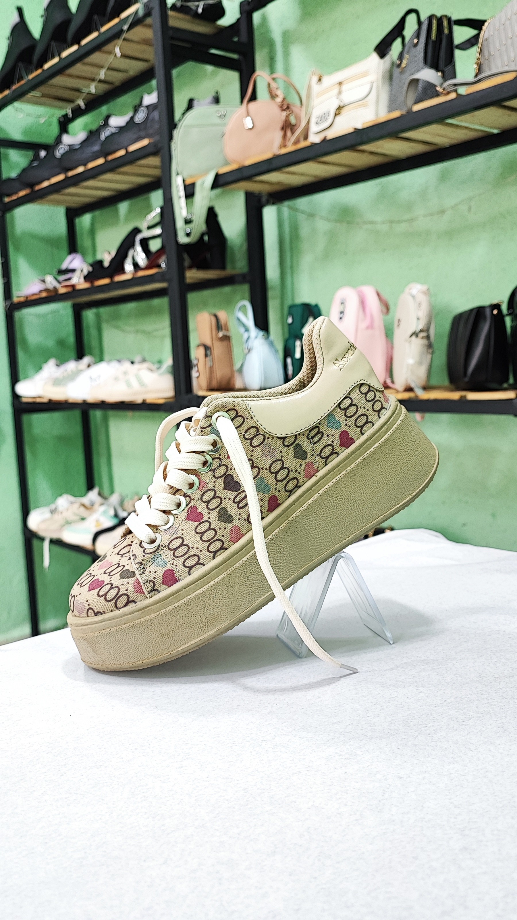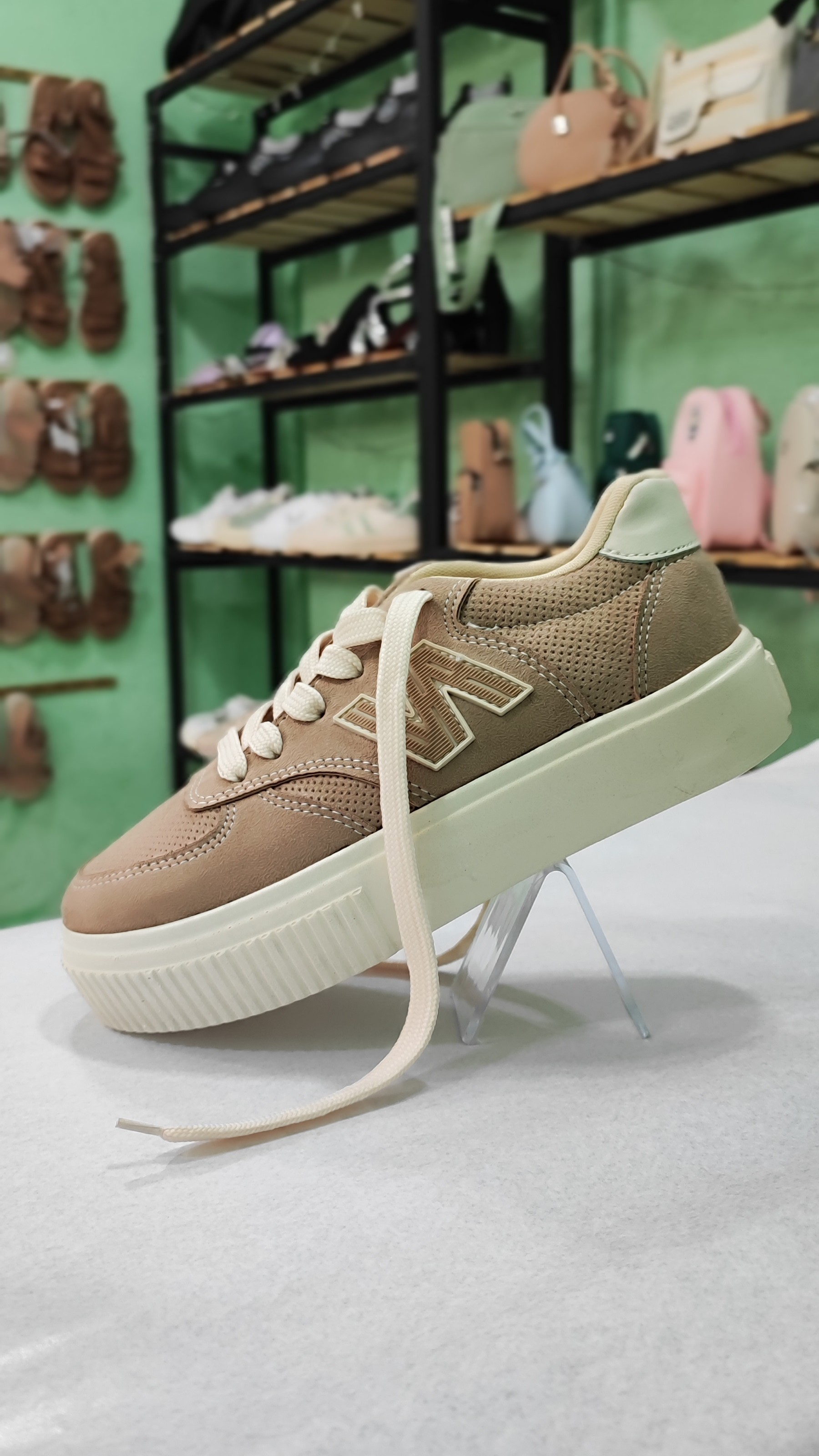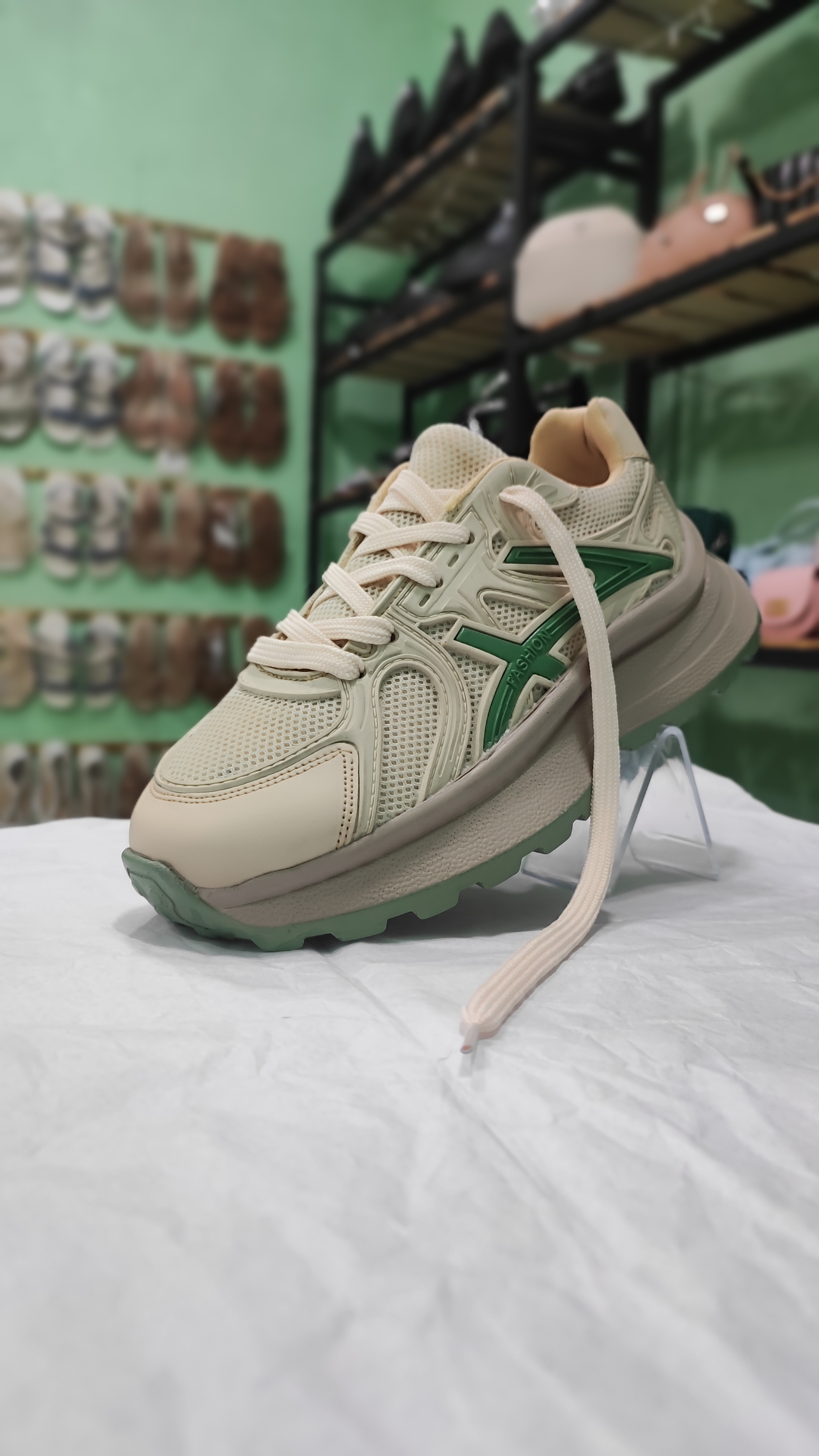کفش کتونی اسپرت زنانه مدل فشن رنگ کرم سبز