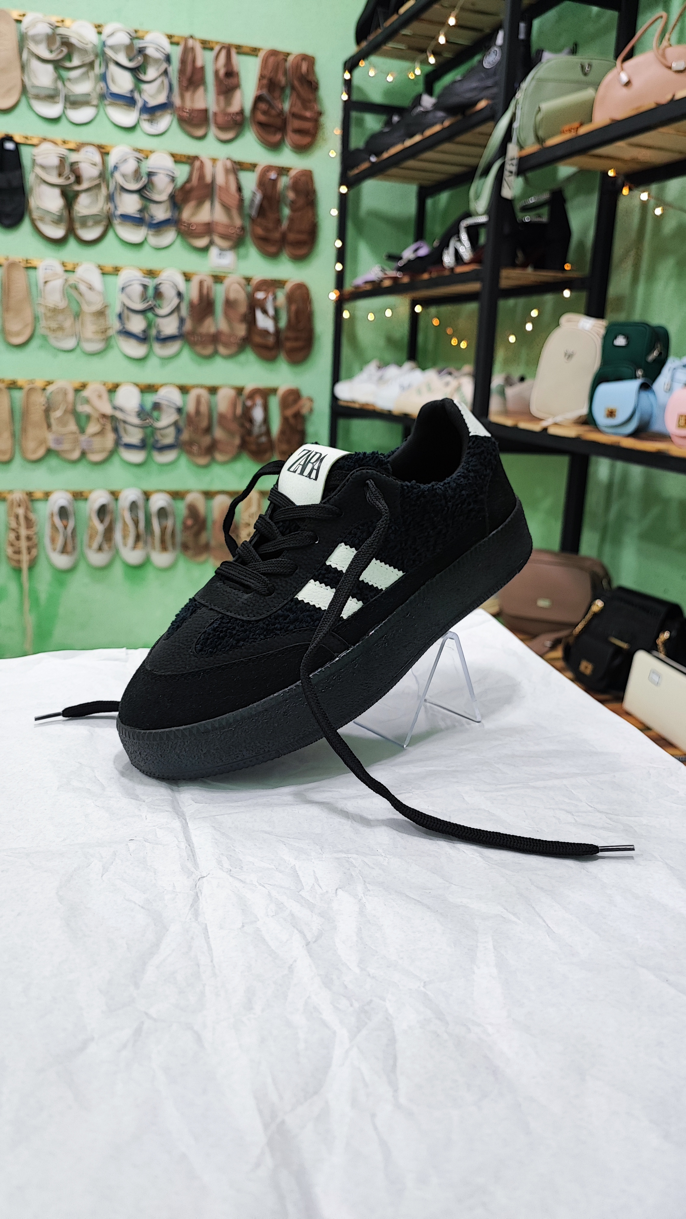 کفش کتونی زارا زنانه رنگ مشکی پرز دار مخملی