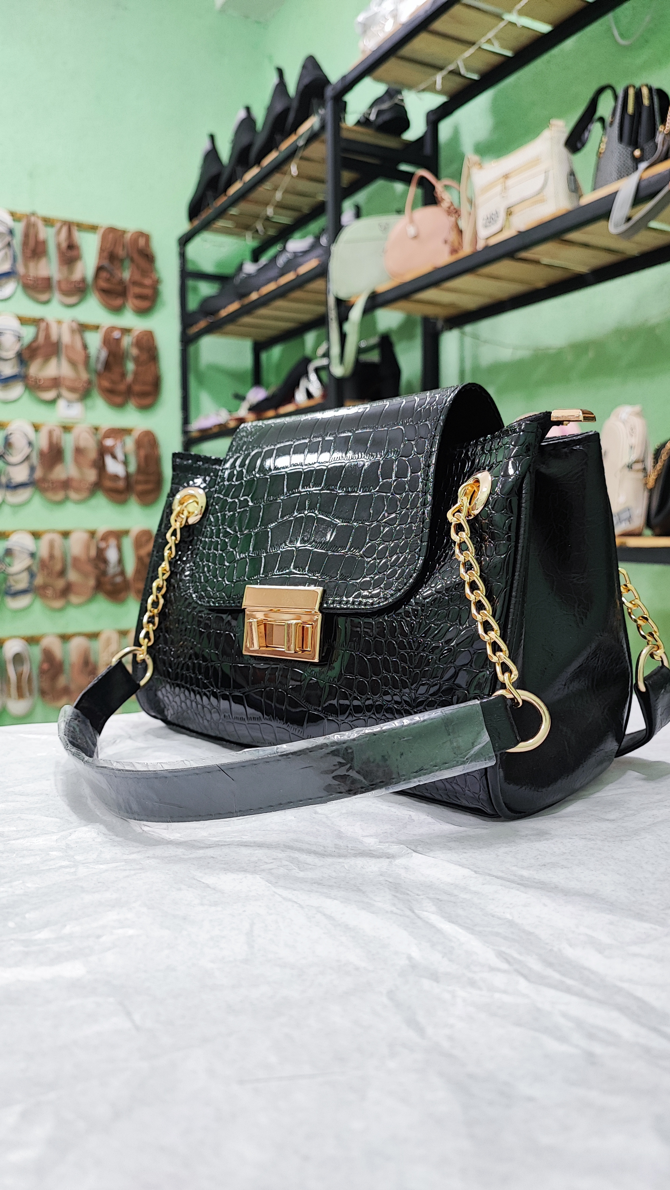 کیف استایل زنانه طرح پ جروک رنگ مشکی زنجیر دار