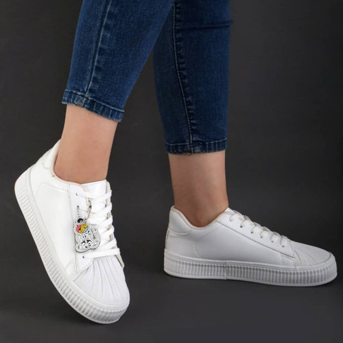 کفش کتونی اسپرت زنانه رنگ سفید با طرح گل یاس